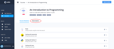 Codio has a rich collection of theory and practical content. But when it comes to coding, Codio really shines. Our Introduction to Programming course includes the Python 3, JavaScript and Java programming languages. If you find your class is mastering one language, you can try introducing a second language or teaching Flode or Crunch.