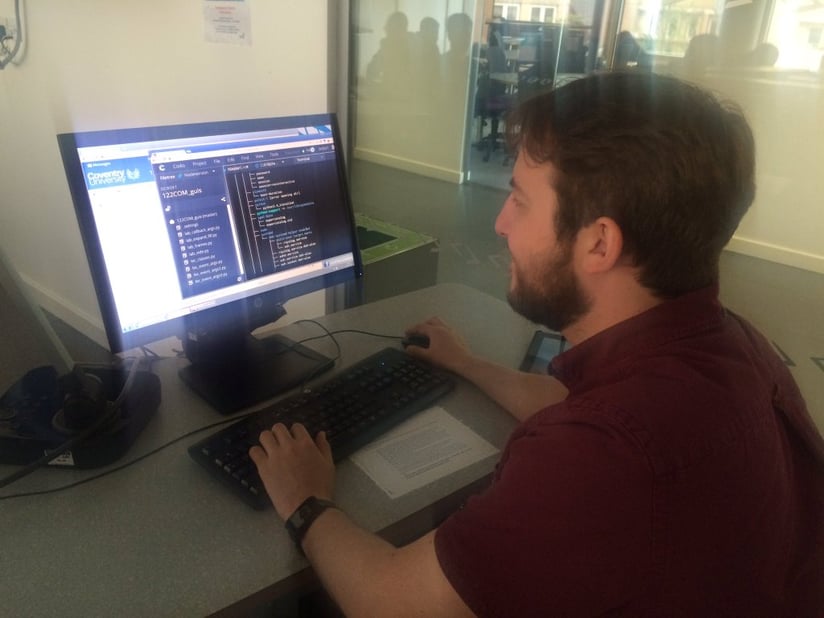 Photo: David Croft at Coventry University setting up his teaching environment on Codio. Photo curtsey of @DrLancaster from @covcampus