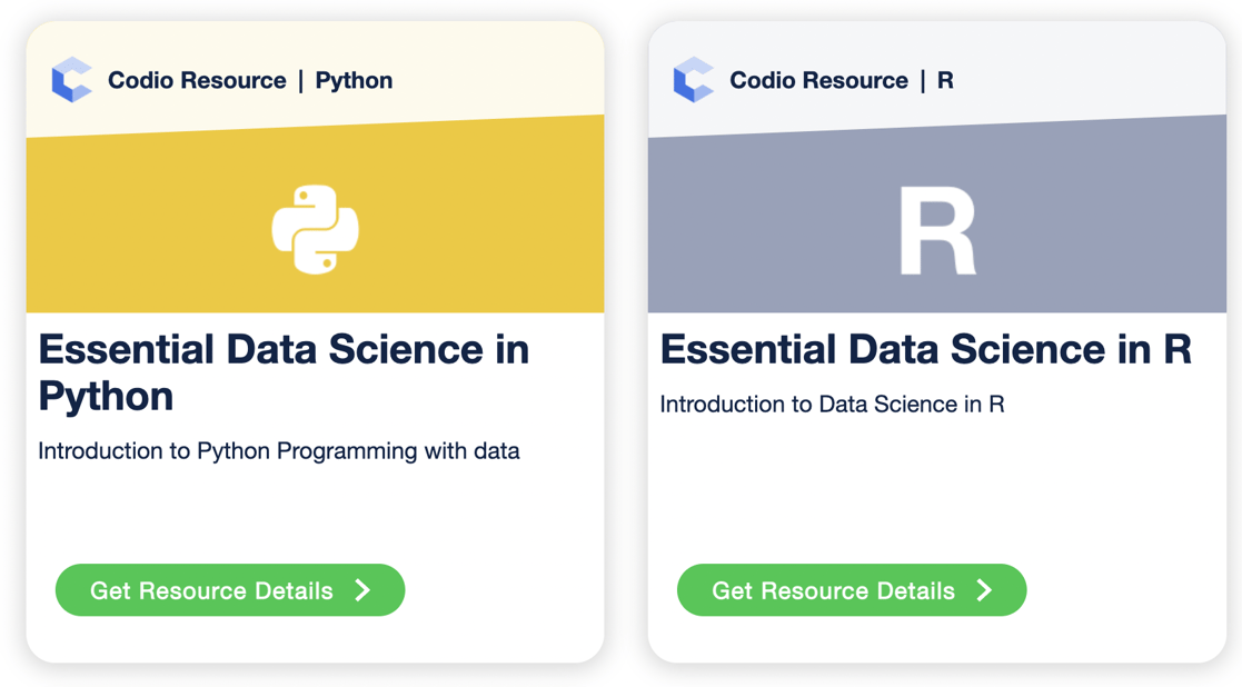 The first is our R Course for Data Science Essentials. This course offers instructors a modular format for data science teaching that can be re-ordered, re-named or have units removed as required. Plus, Codio's interactive interface ensures that students are constantly engaged as they type code directly into the page.