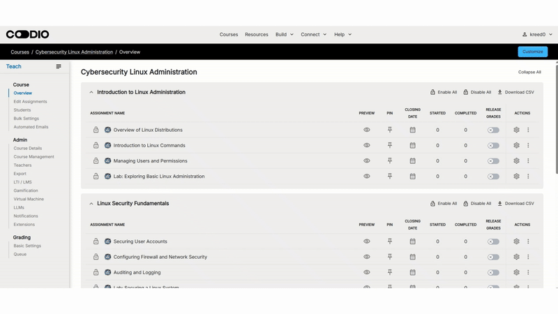 Because the course is security-aligned, instructors can also easily extend it by adding organization-specific tooling or workflows (for example: log review practices, secure account standards, or hardening checklists) without disrupting the learning progression.