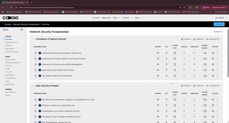 Reorder topics, rename units, and insert your own content at natural breakpoints. Codio’s authoring tools make it simple to tailor the experience to your objectives while keeping a strong focus on network-security fundamentals.